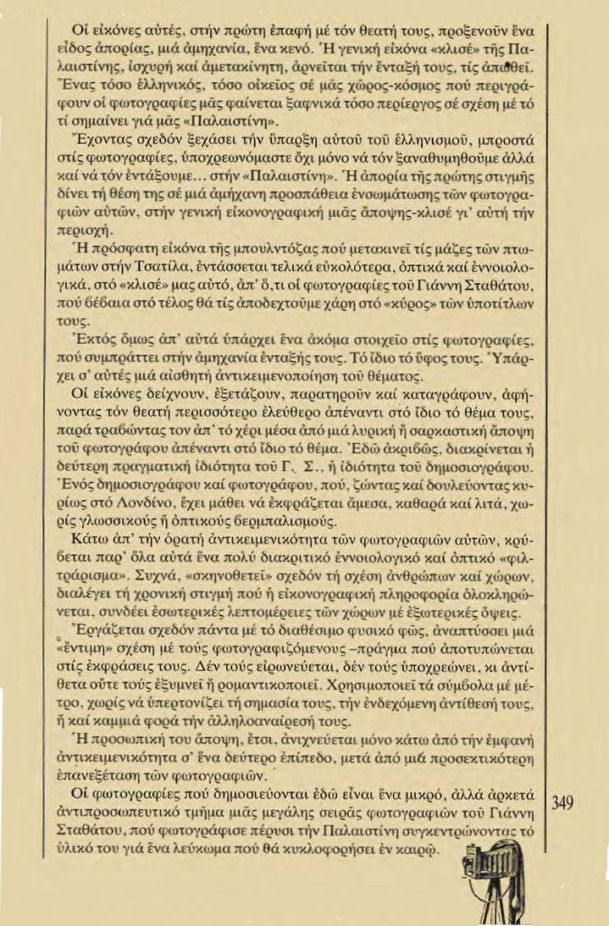 , «Τέχνες. Γιάννης Σταθάτος: Φωτογραφίες από τα μοναστήρια της Παλαιστίνης», Χάρτης, τχ. 3 (Νοέμβριος 1982), σ. 348-349