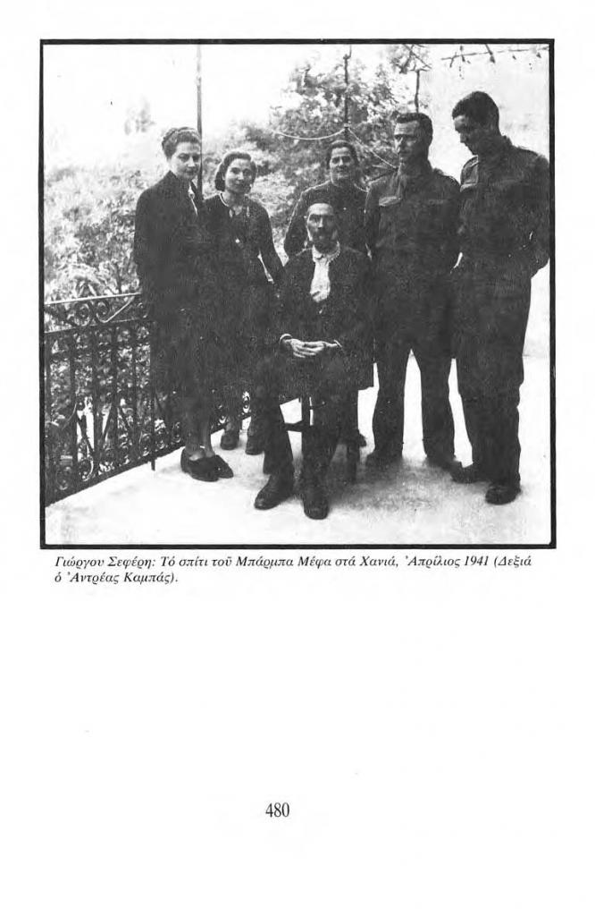 Σεφέρης Γιώργος, «Το σπίτι του Μπάρμπα Μέφα στα Χανιά, Απρίλιος 1941 (Δεξιά ο Αντρέας Καμπάς)», Χάρτης, τχ. 4 (Ιανουάριος 1983), σ. 480