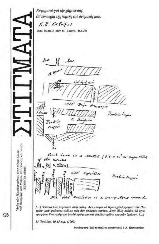 Καβάφης Κωνσταντίνος Π., «Στίγματα. [Απόσπασμα επιστολής στον Μ. Βαϊάνο]», Χάρτης, τχ. 5-6 (Απρίλιος 1983), σ. 526