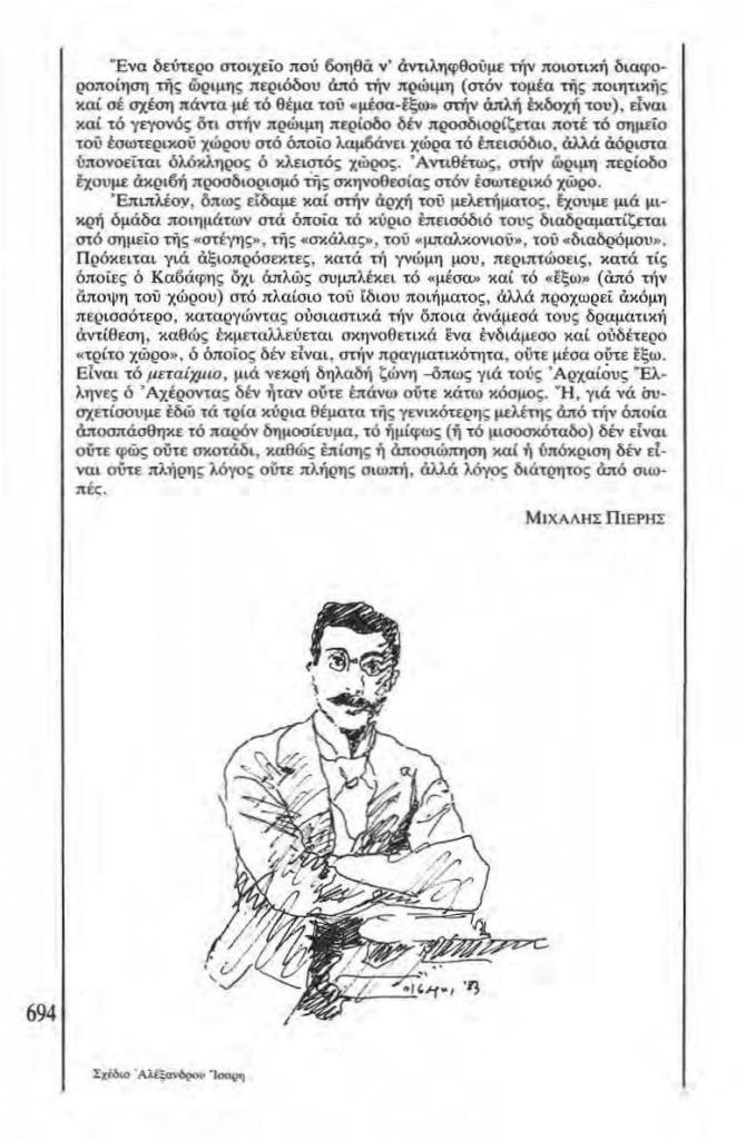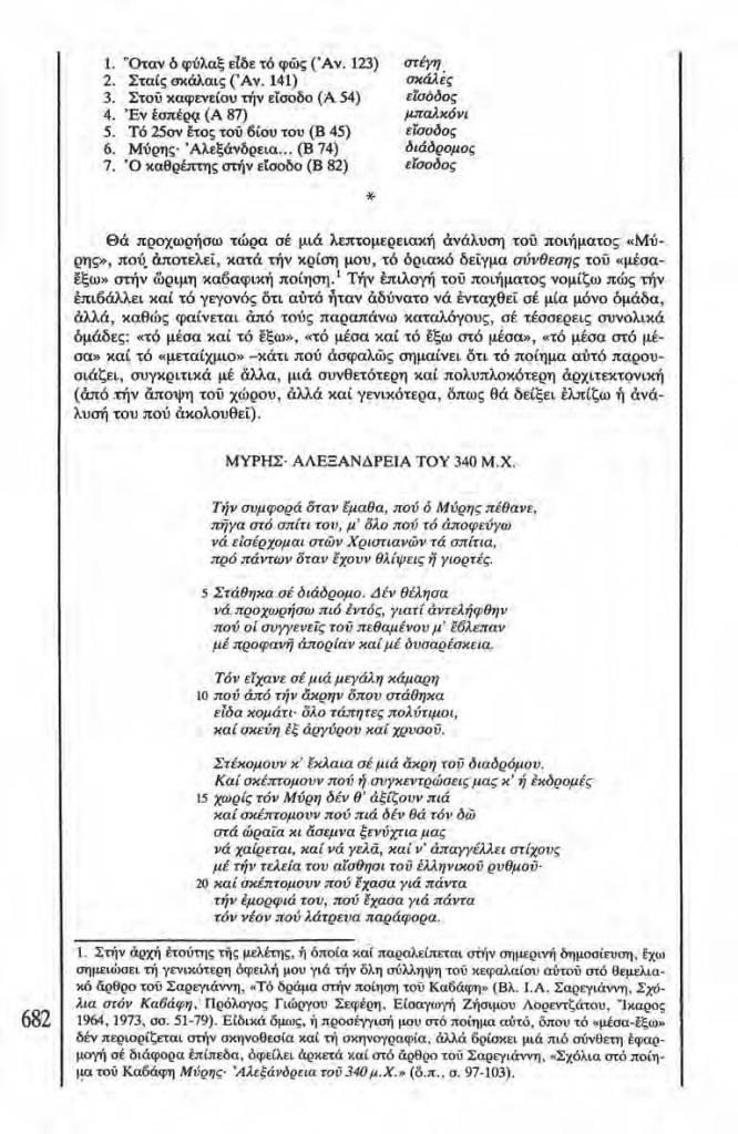 , «Κλίμακες. Το μέσα και το έξω στην ποίηση του Καβάφη (η ώριμη φάση)», Χάρτης, τχ. 5-6 (Απρίλιος 1983), σ. 679-686, 688-694