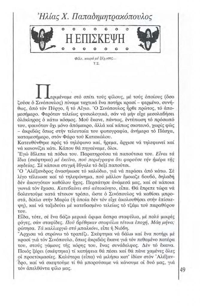 Παπαδημητρακόπουλος Ηλίας Χ., «Κείμενα. Η επίσκεψη», Χάρτης, τχ. 7 (Ιούλιος 1983), σ. 49