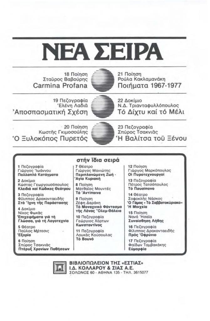 «Νέα σειρά. Βιβλιοπωλείον της Εστίας Ι.Δ. Κολλάρου & Σιας Α.Ε.»,