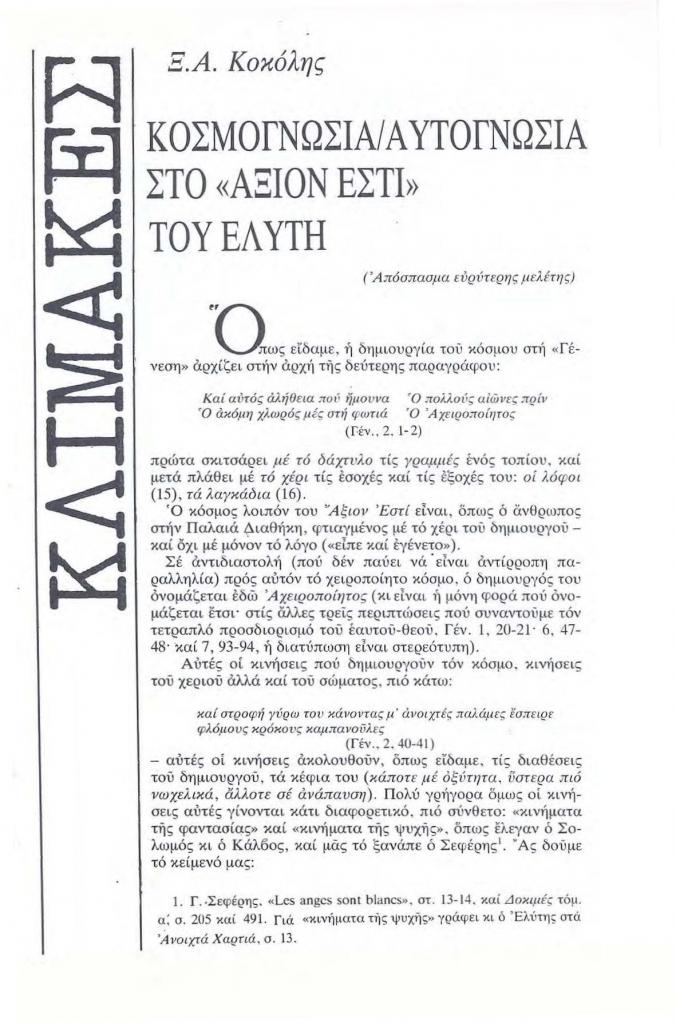 , «Κλίμακες. Κοσμογνωσία/ Αυτογνωσία στο