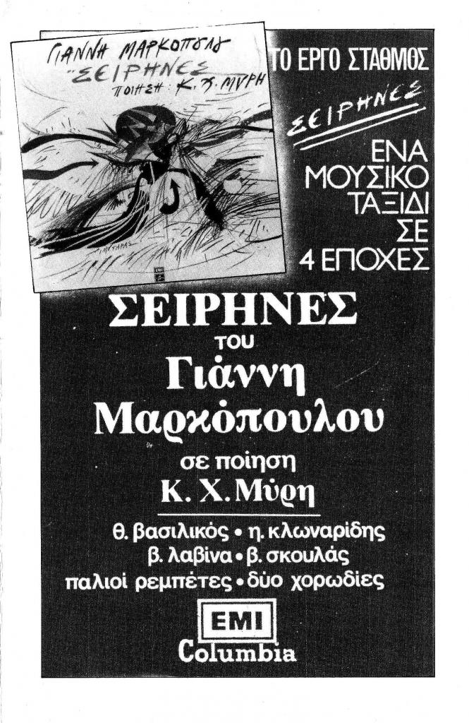 «Σειρήνες του Γιάννη Μαρκόπουλου σε ποίηση Κ.Χ. Μύρη»,