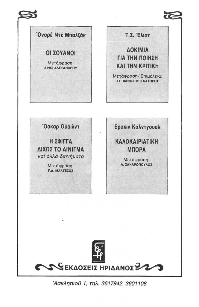 «Εκδόσεις Ηριδανός», Χάρτης, τχ. 9 (Δεκέμβριος 1983), σ. 314