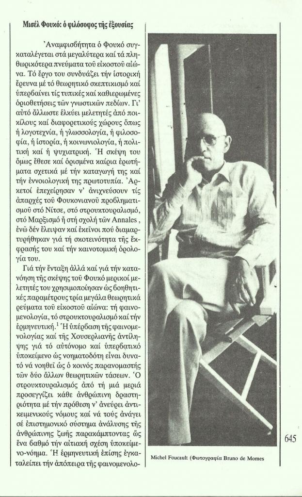 Momes Bruno de, «Michel Foucault», Χάρτης, τχ. 12 (Σεπτέμβριος 1984), σ. 645