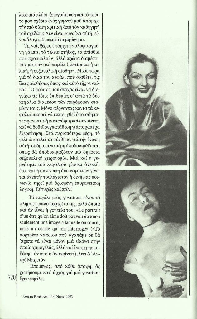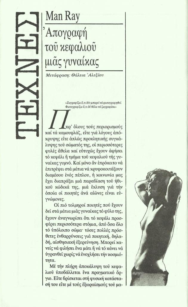 , «Τέχνες. Απογραφή του κεφαλιού μιας γυναίκας»,