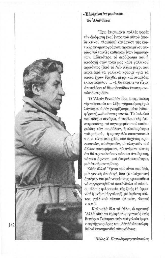 , «Στίγματα. Η ζωή είναι ένα ρομάντσο του Αλαίν Ρεναί»,