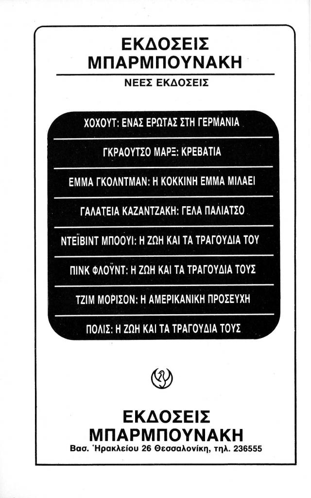 «Εκδόσεις Μπαρμπουνάκη. Νέες εκδόσεις», Χάρτης, τχ. 14 (Ιανουάριος 1985), σ. 158