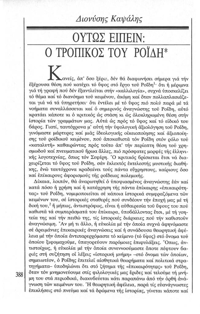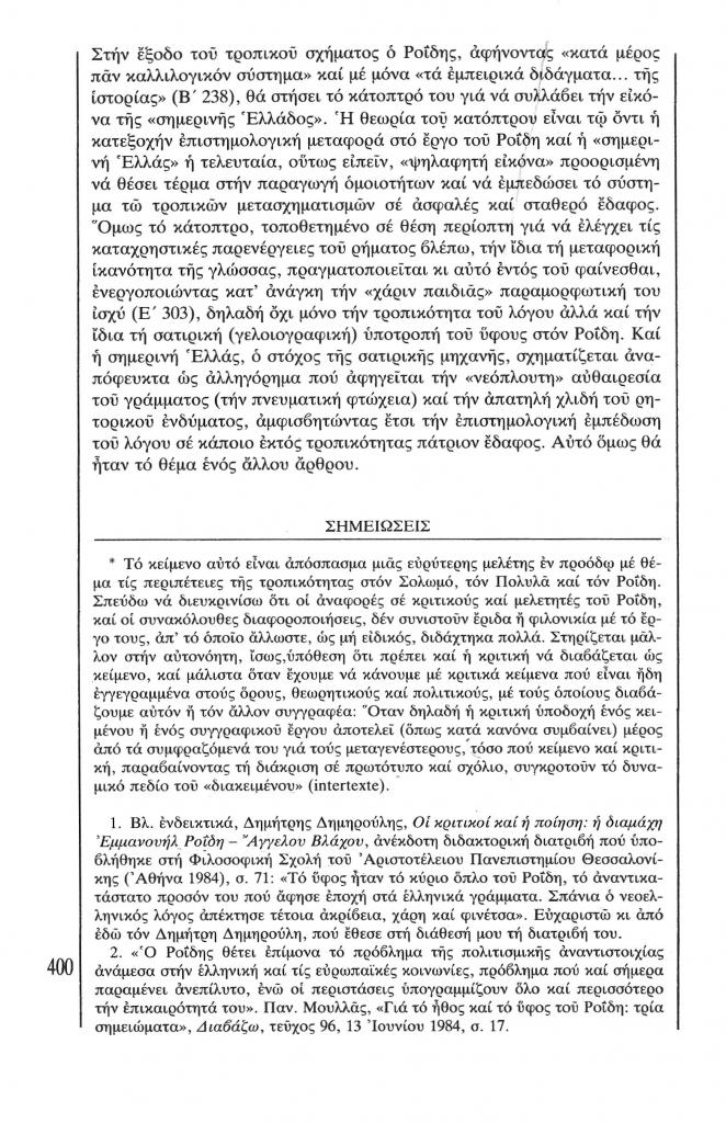 , «Σελίδες: Εμμανουήλ Ροΐδης, Β. Ούτως ειπείν: ο τροπικός του Ροΐδη»,