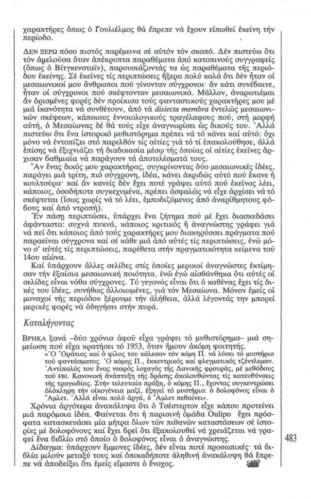 Eco Umberto, «Κείμενα. Μετά το Όνομα του Ρόδου », Χάρτης, τχ. 16 (Ιούλιος 1985), σ. 469-472, 474-483