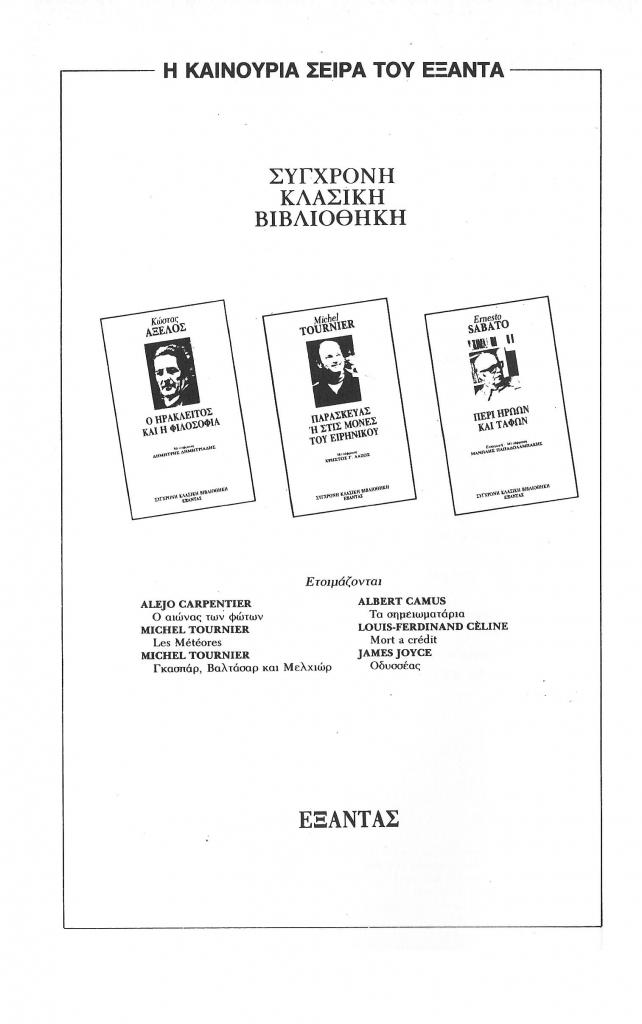 «Η καινούρια σειρά του Εξάντα. Σύγχρονη κλασική βιβλιοθήκη»,