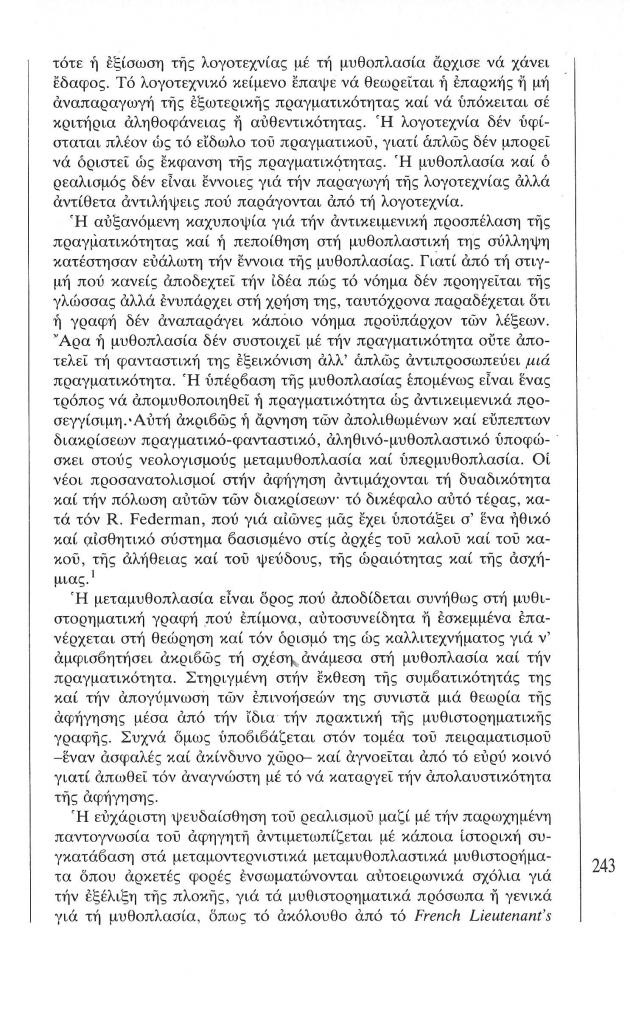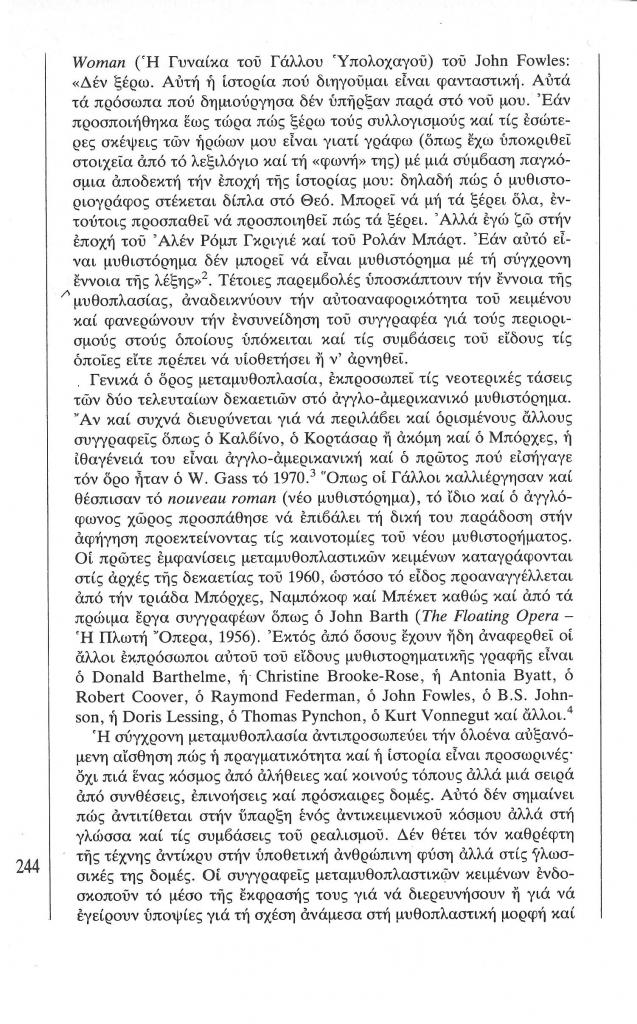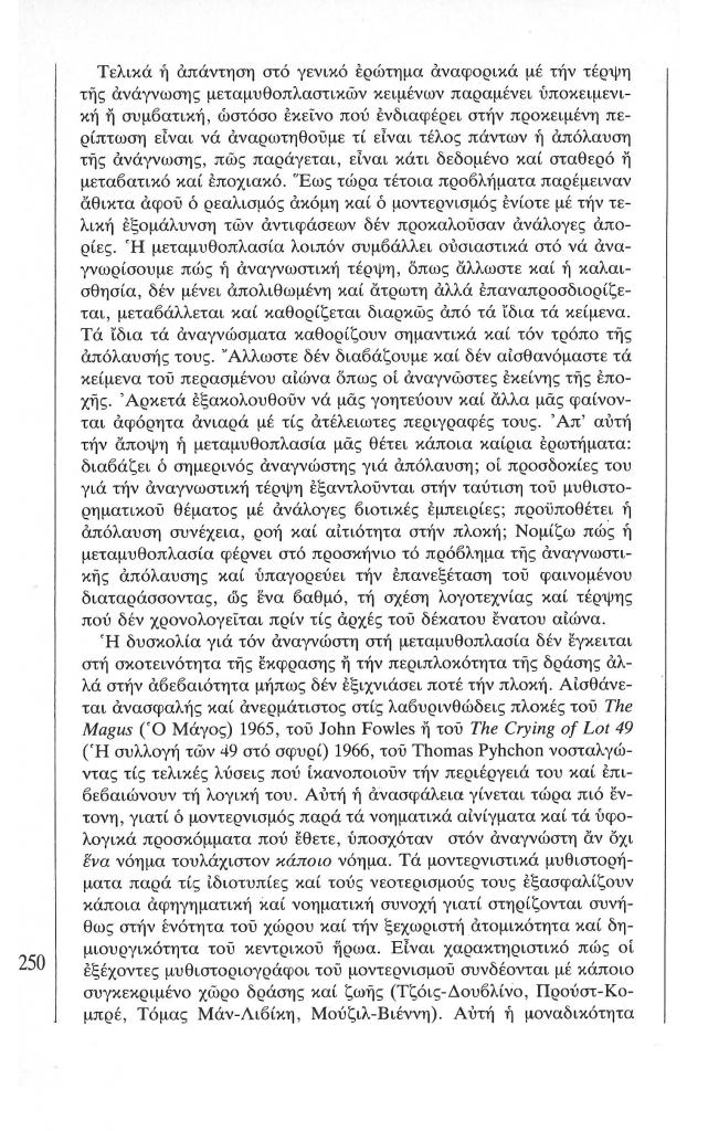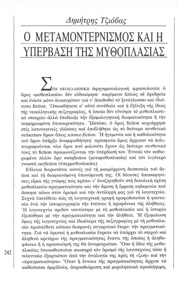 , «Κλίμακες. Ο μεταμοντερνισμός και η υπέρβαση της μυθοπλασίας»,