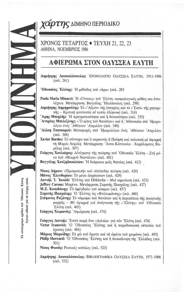 «Υπόμνημα. Αφιέρωμα στον Οδυσσέα Ελύτη»,