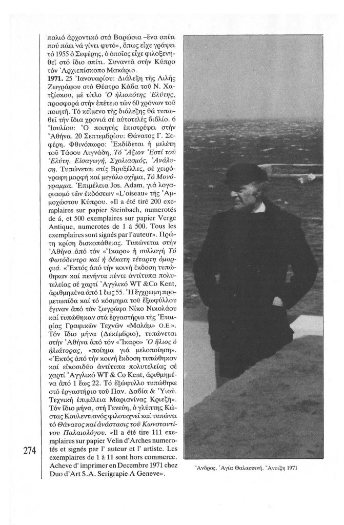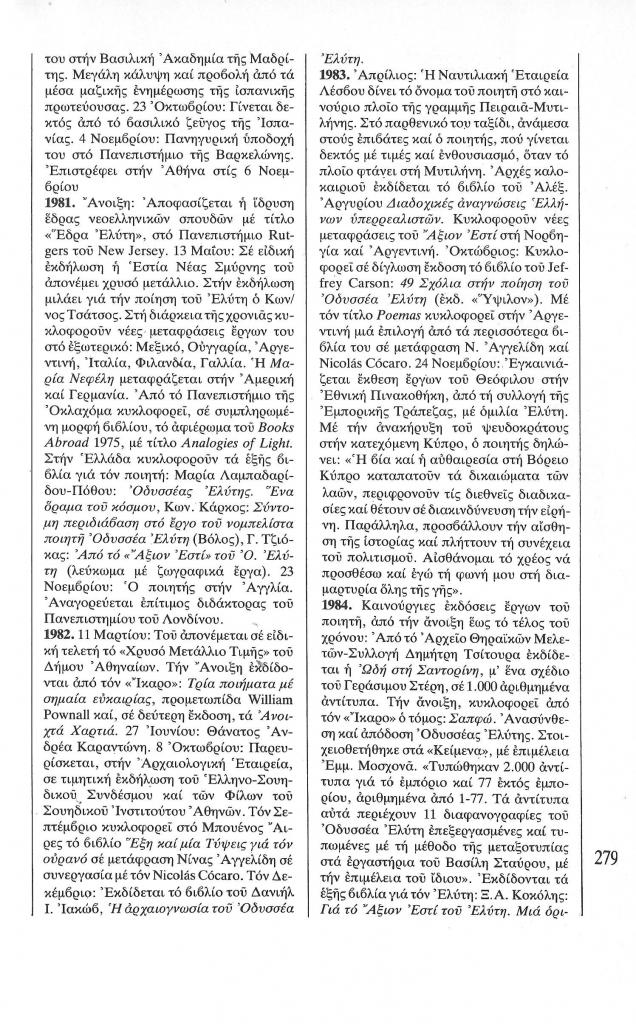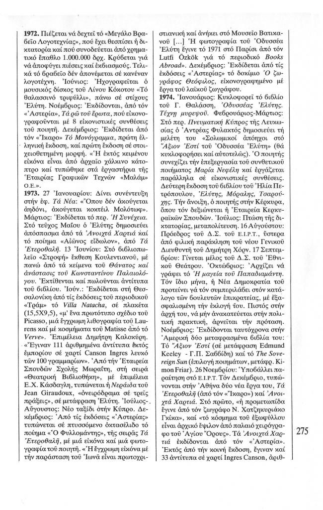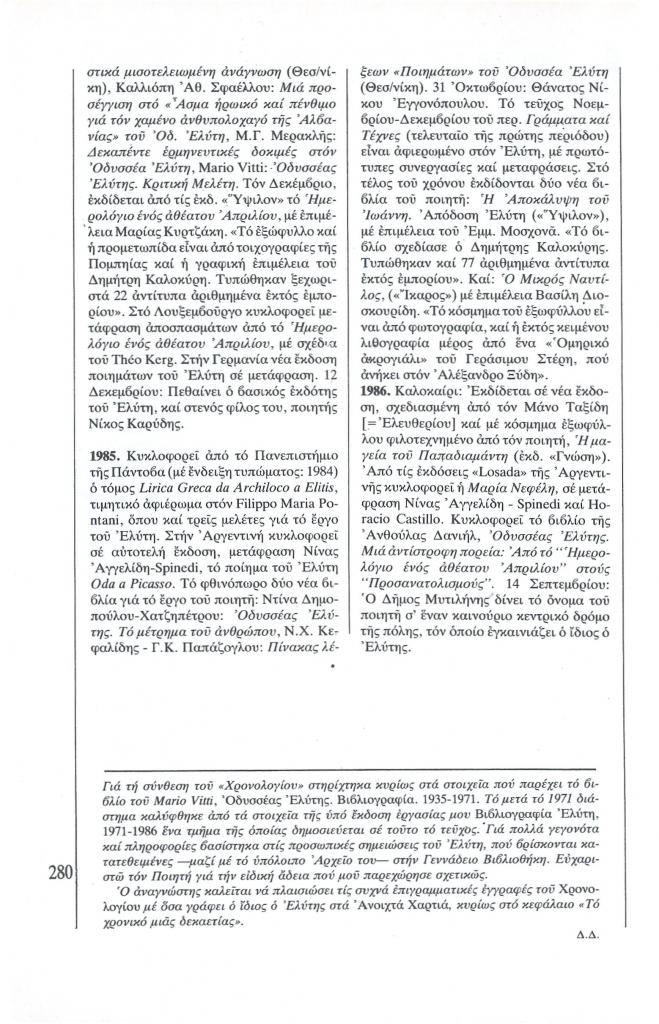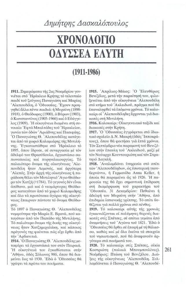 , «Χρονολόγιο Οδυσσέα Ελύτη (1911-1986)»,