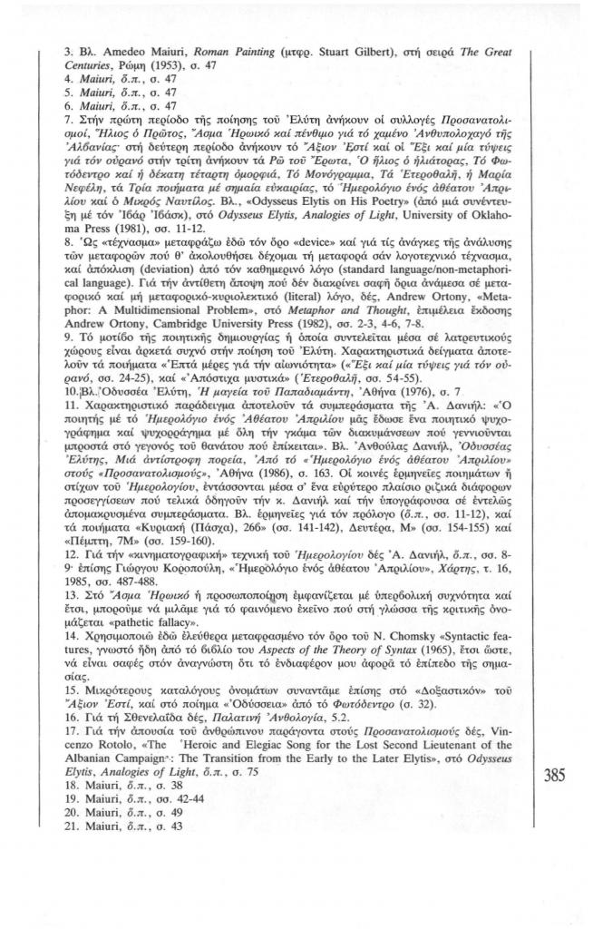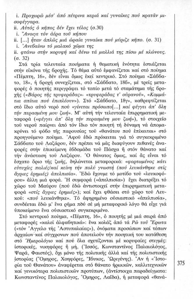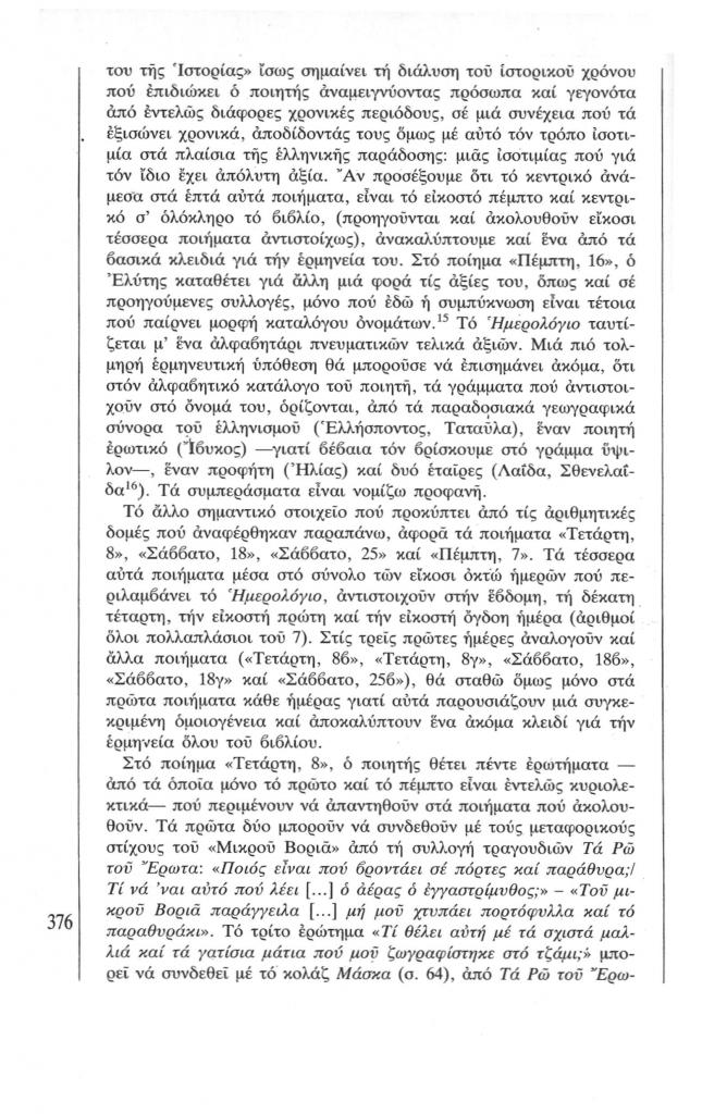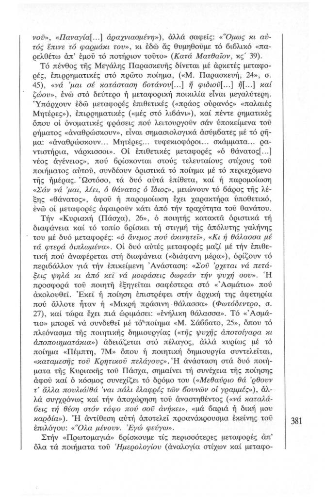 Τσοτσορού Αλίκη, «Μεταφορές στο Ημερολόγιο ενός αθέατου Απριλίου», Χάρτης, τχ. 21-23 (Νοέμβριος 1986), σ. 368-373, 375-379, 381-386