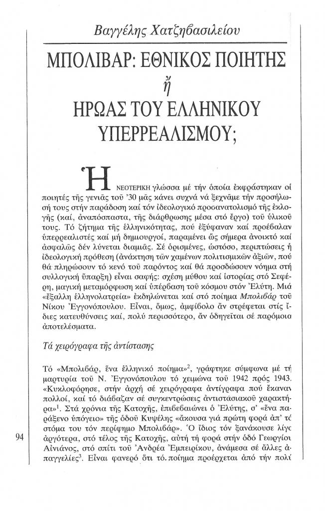 , «Μπολιβάρ: Εθνικός ποιητής ή Ήρωας του ελληνικού υπερρεαλισμού;»,
