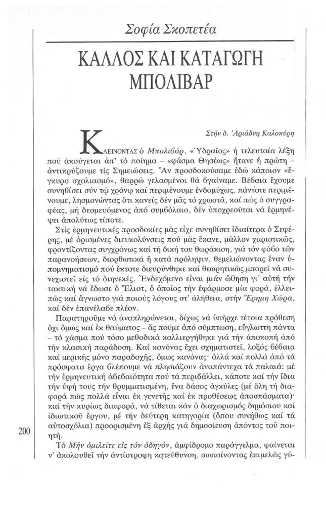 Σκοπετέα Σοφία, «Κάλλος και καταγωγή. Μπολιβάρ», Χάρτης, τχ. 25-26 (Νοέμβριος 1988), σ. 200-204, 206-217